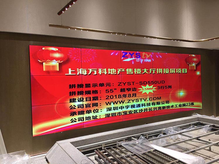 上海萬科地產售樓大廳55寸液晶拼接屏項目選擇中宇視通科技的拼接方案,項目安裝調試完成并且順利驗收,中宇視通科技全體職工從深圳發(fā)來賀電!